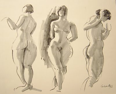 Os presento aquí unos cuantos dibujos de los muchos que he realizado, y que sigo realizando, a lo largo de los años, muchos de ellos en el Cercle Artistic de Sant Lluc de Barcelona. Todos son del natural, con lápiz de grafito, carbón, tinta china y acuarela; casi siempre de desnudos, con modelo “in situ” y que me han servido, además de para mi propio aprendizaje y deleite personal, como trampolín para mis obras en color de mayor formato.