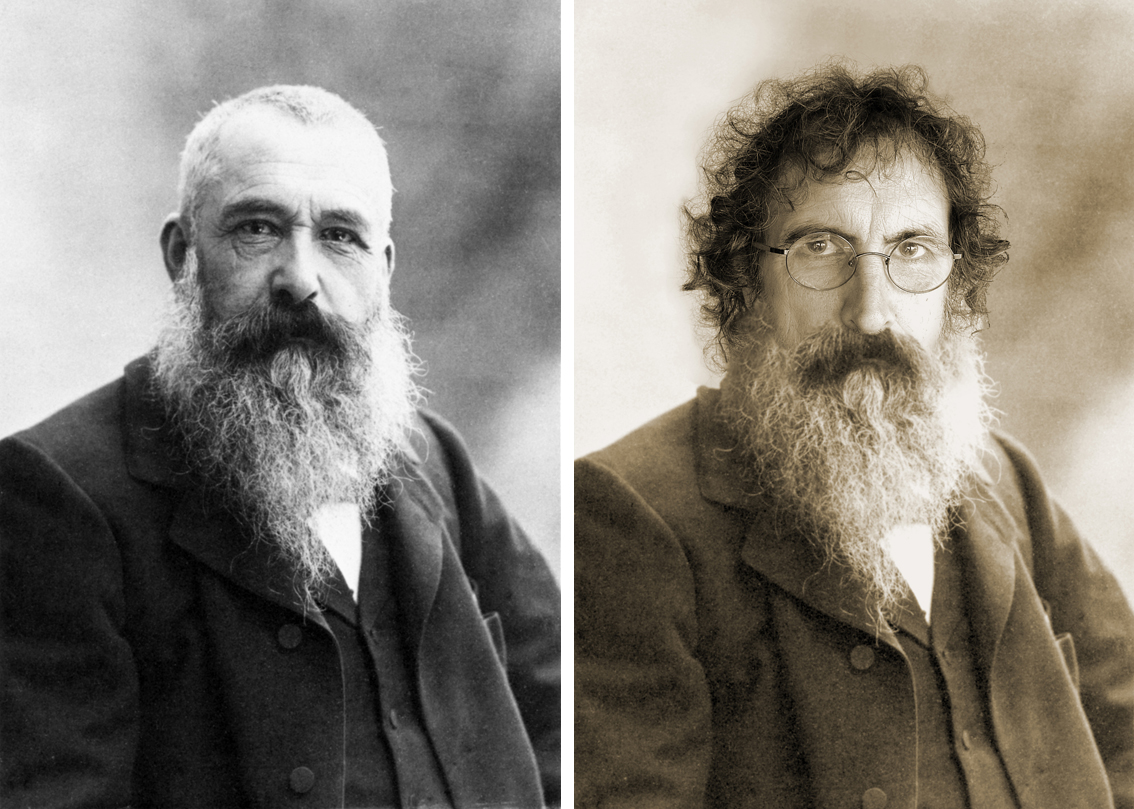 Como veis todo es posible con Photoshop y también uno se puede divertir haciendo estas cosas. He aquí un retrato mío transformado a partir de una vieja fotografía del gran impresionista Claude Monet.