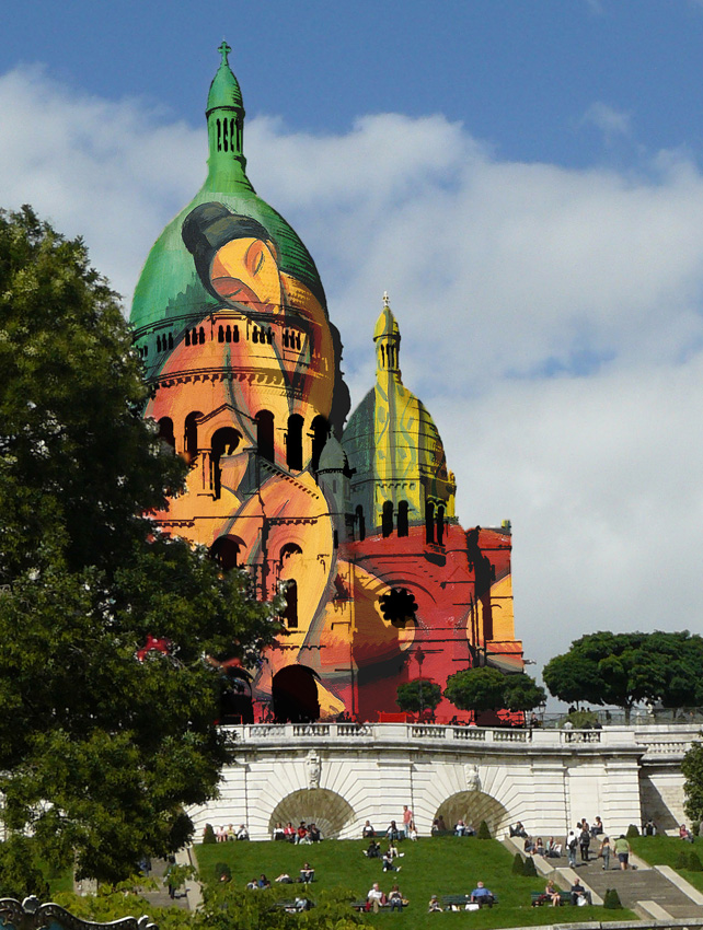 Ahora bien, quiero decirte que me gusta mucho tu arte, y me encanta cómo se ve en todos los edificios en donde lo pusiste con photoshop. Creo que al mundo le caería bien algo de color y alegría.