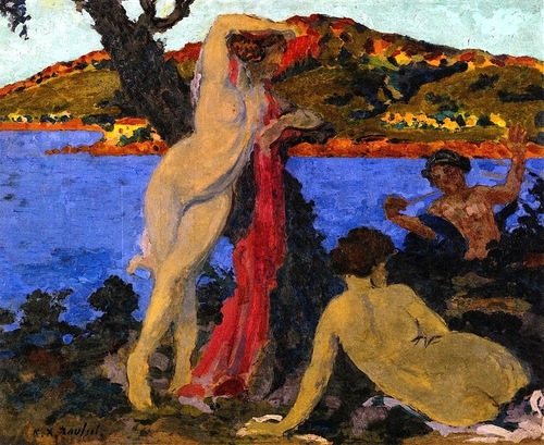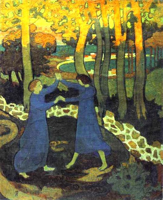 Aquella enseñanza campestre fue la chispa que hizo brotar en Sérusier la llama de su nueva concepción del arte. La pequeña tabla, llamada el Talismán, que había pintado junto a su maestro, la mostró, ya de regreso a París, a sus compañeros de la Academié Sant Julian, Maurice Denis, Pierre Bonnard, Paul Ranson y Henri Gabriel Ibels, que la vieron como una «revelación». Sérusier, gran erudito, filósofo y teólogo que era se reveló como el guru de aquel grupo de jóvenes que se autoproclamaron los Nabis («profetas» traducido del hebreo). Poco después se sumarian Édouard Vuillard, Ker-Xavier Roussel, el suizo Félix Vallotton, el húgaro Rippl- Ronaï y los escultores Lacombe y Maillol. Como si de una hermandad mística se tratase adoptaron la parafernalia de una sociedad secreta: se ponían trajes orientales, se escribían cartas en un lenguaje arcaico, se bautizaron con apodos apropiados (Sérusier era en nabi à la barbe rutilante, Denis el nabi aux bellles icônes… )