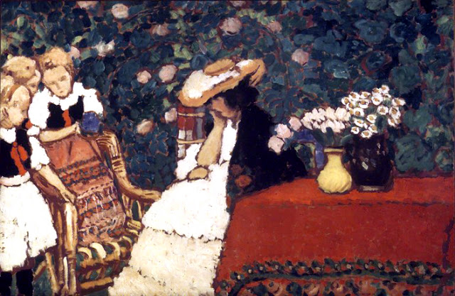 Dejando de lado las parafernalias, que en parte eran medio en broma medio en serio, tenían concepciones teóricas muy reflexionadas. En sus primeros intentos se trataba de pequeños formatos, pinturas casi planas y abstractas, con el color puro como medio de plasmar las sensaciones del alma en el lienzo. A mi entender fueron los primeros «fauves» y los primeros pintores abstractos, de ahí la importancia del movimiento. Fue Marurice Denis, teórico del grupo, quién formuló la lapidaria frase: «Recordar que un cuadro – antes de ser un caballo de batalla, una mujer desnuda o una anécdota cualquiera- es esencialmente una superficie plana recubierta de colores dispuestos con un cierto orden.»