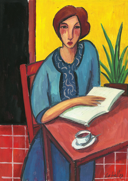 Mujer con libro y café