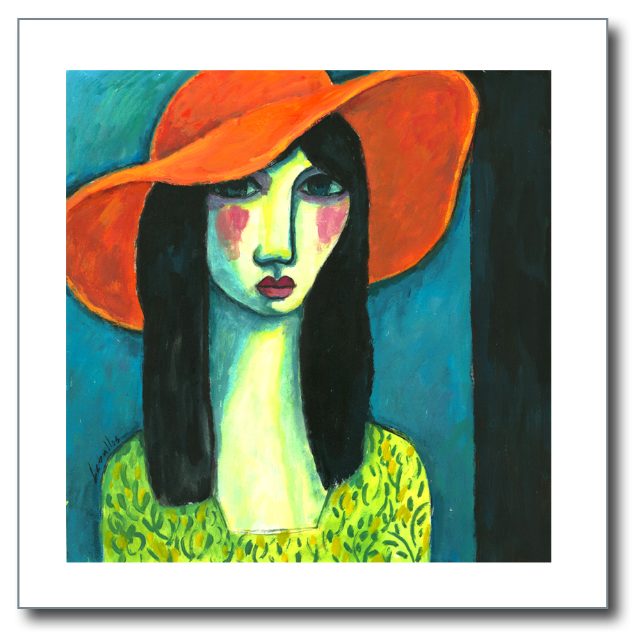 Mujer con pamela naranja
